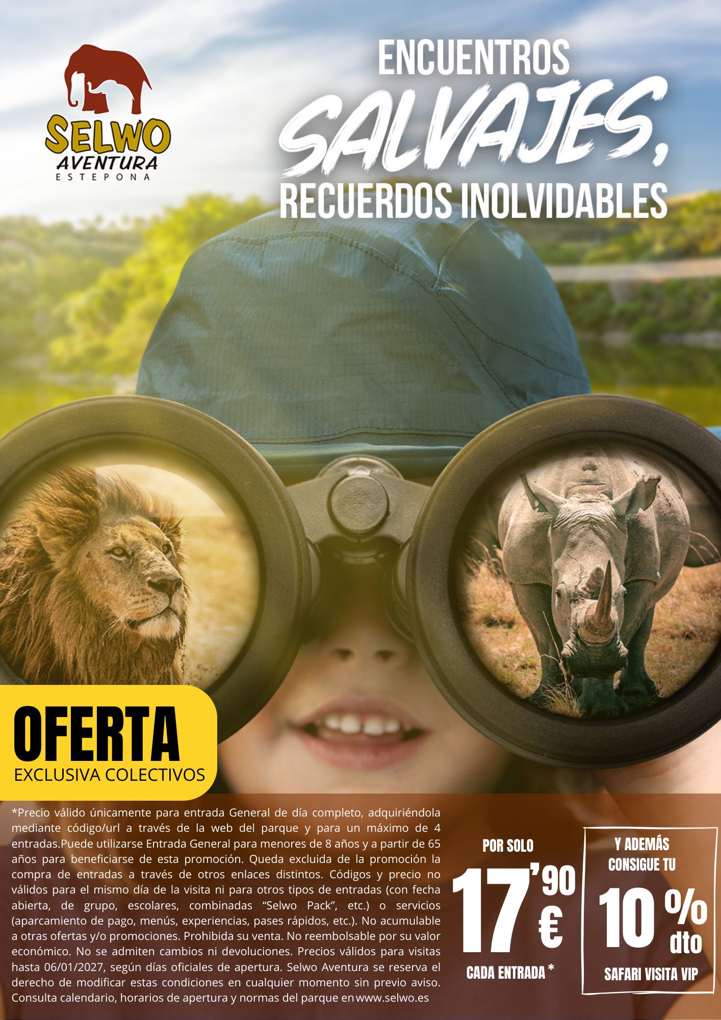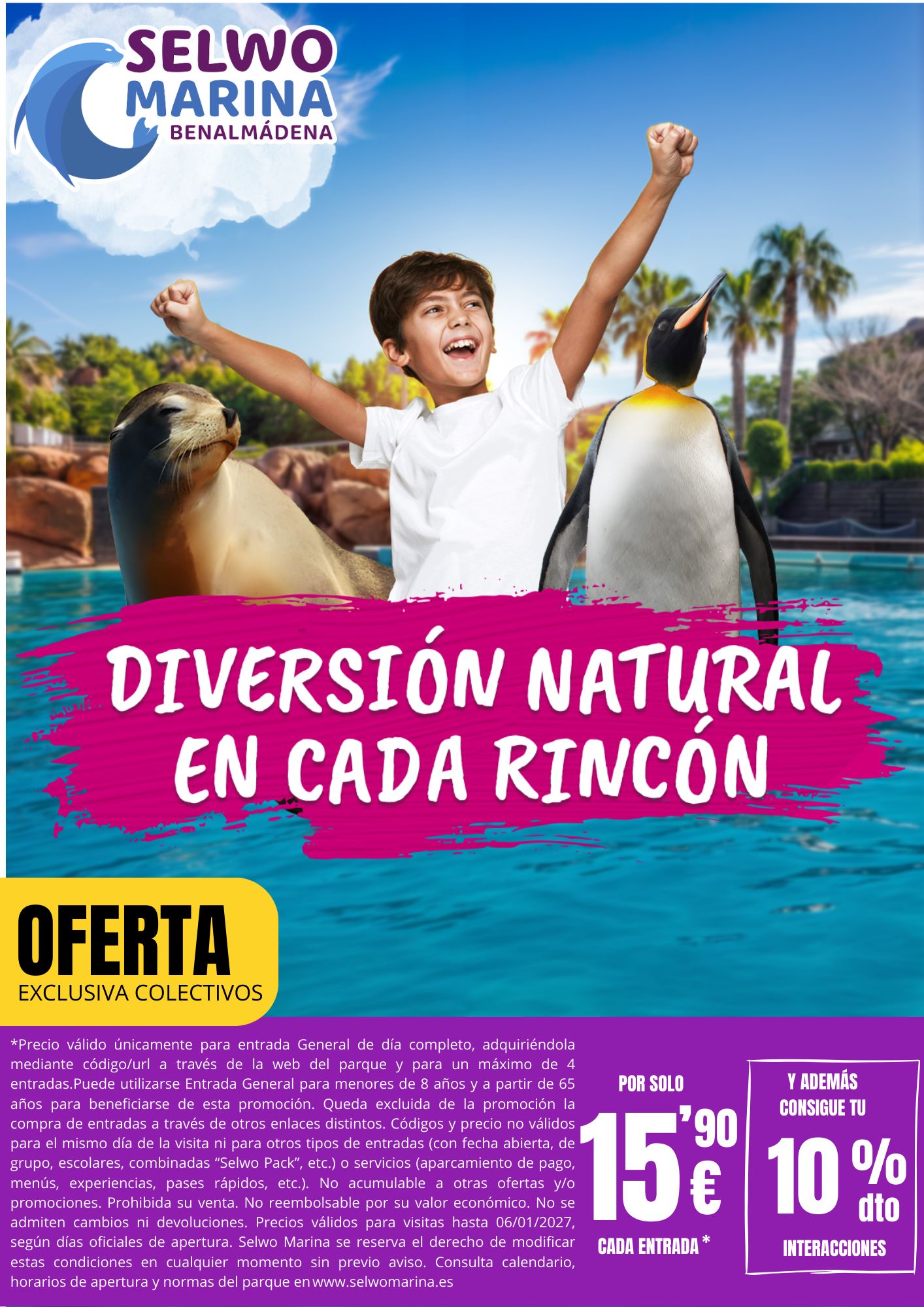 Para la temporada 2026 le ofrecemos un precio especial de 17,90€ para visitar Selwo Aventura, y 15,90 para Selwo Marina o Teleférico Benalmádena.