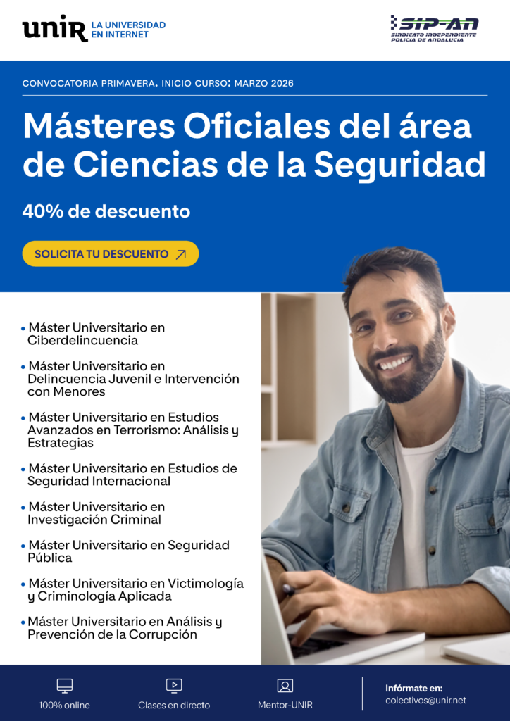- 40% dto. en los 8 másteres de Ciencias de la Seguridad